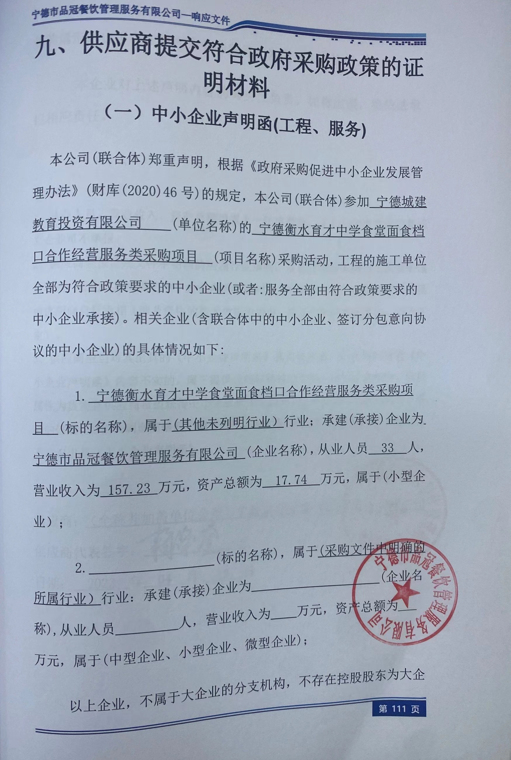 二、項目名稱:寧德衡水育才中學(xué)食堂面食檔口合作經(jīng)營服務(wù)類采購項目