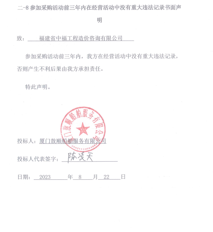 資格審查小組根據(jù)招標文件要求,對各投標人的投標資格進行審查,其中“寧德銘呈國際貨運代理有限公司”電子投標文件中未提供單位負責人授權(quán)書原件掃描件,資格性審查不通過;“天津聚洋海洋工程有限公司”投標文件中未提供投標截止時間前六個月(不含投標截止時間的當月)中任一月份的稅收憑據(jù)復印件及電子投標文件中未提供單位負責人授權(quán)書原件掃描件,資格性審查不通過;其余投標人資格性及符合性通過審查。