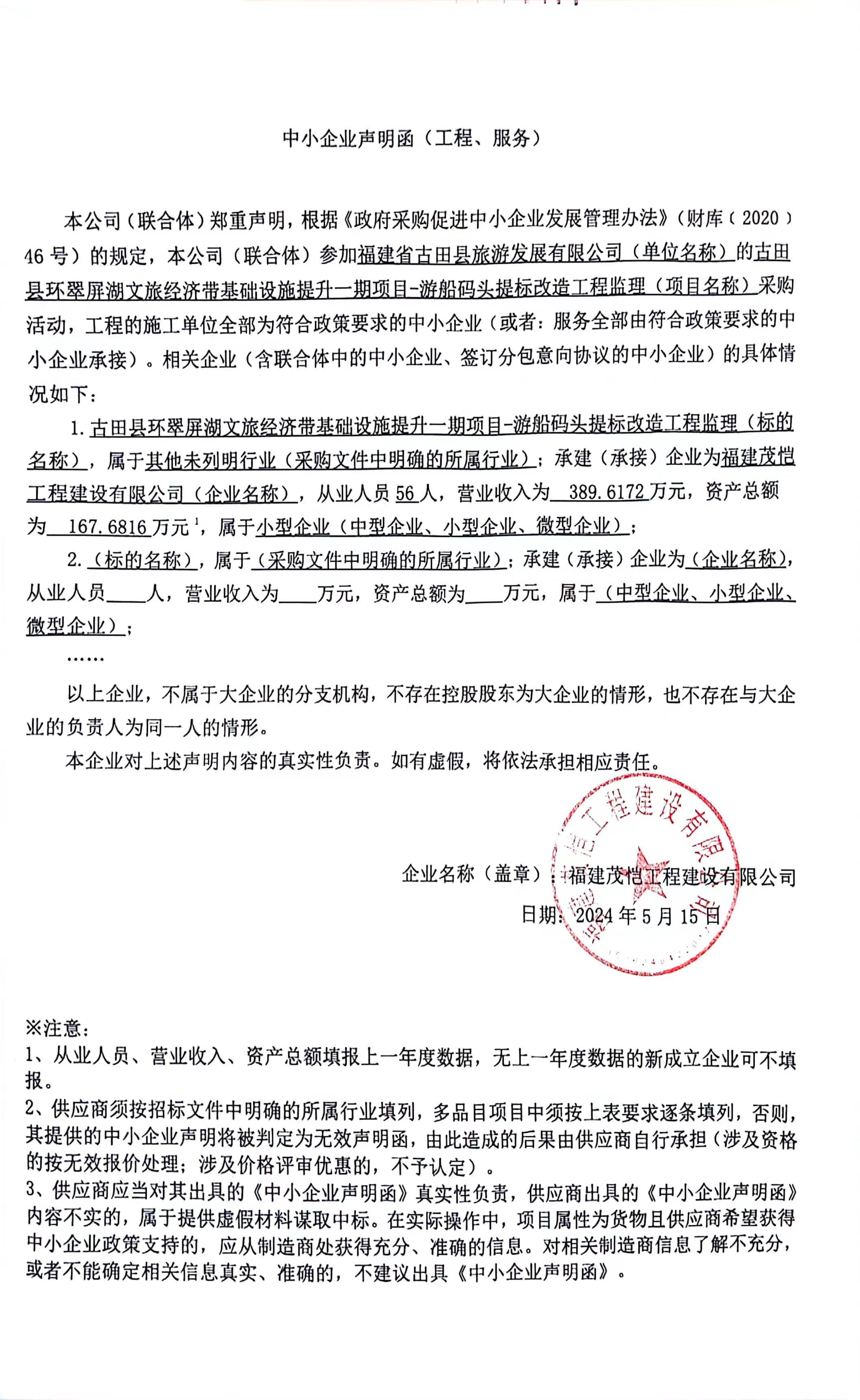 二、項目名稱:古田縣環(huán)翠屏湖文旅經(jīng)濟帶基礎(chǔ)設(shè)施提升一期項目-游船碼頭提標(biāo)改造工程監(jiān)理