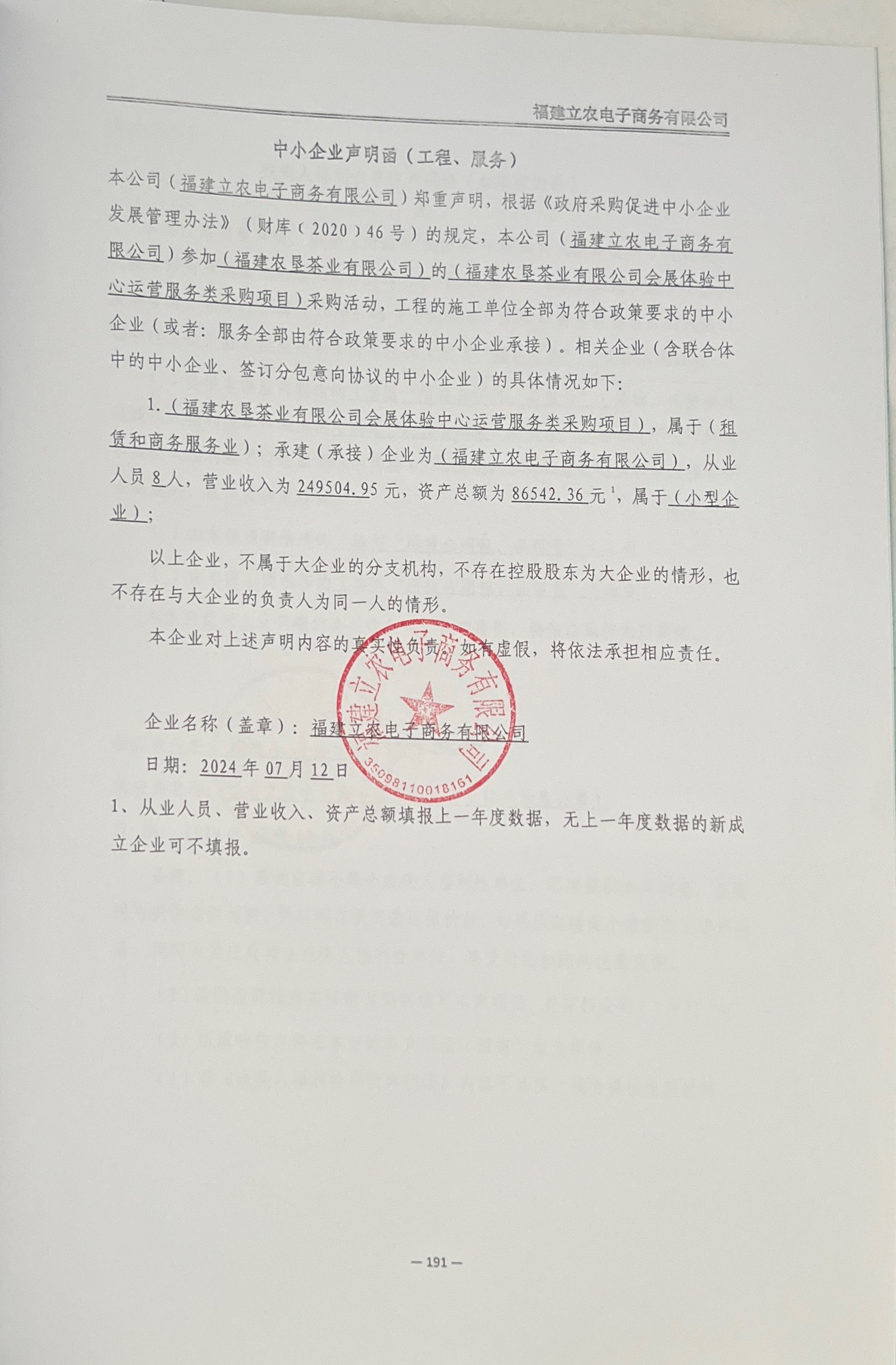 二、項目名稱:福建農(nóng)墾茶業(yè)有限公司會展體驗中心運營服務(wù)類采購項目