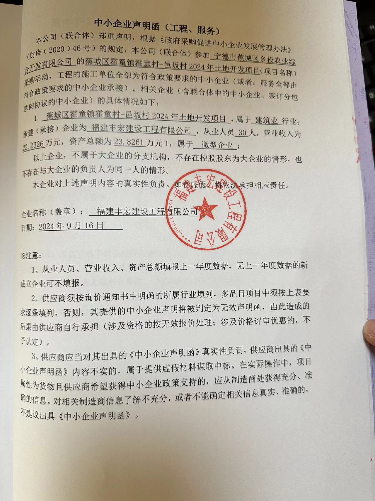 寧德市蕉城區(qū)鄉(xiāng)投農(nóng)業(yè)綜合開發(fā)有限公司關(guān)于蕉城區(qū)霍童鎮(zhèn)霍童村-邑坂村2024年土地開發(fā)項目成交公告