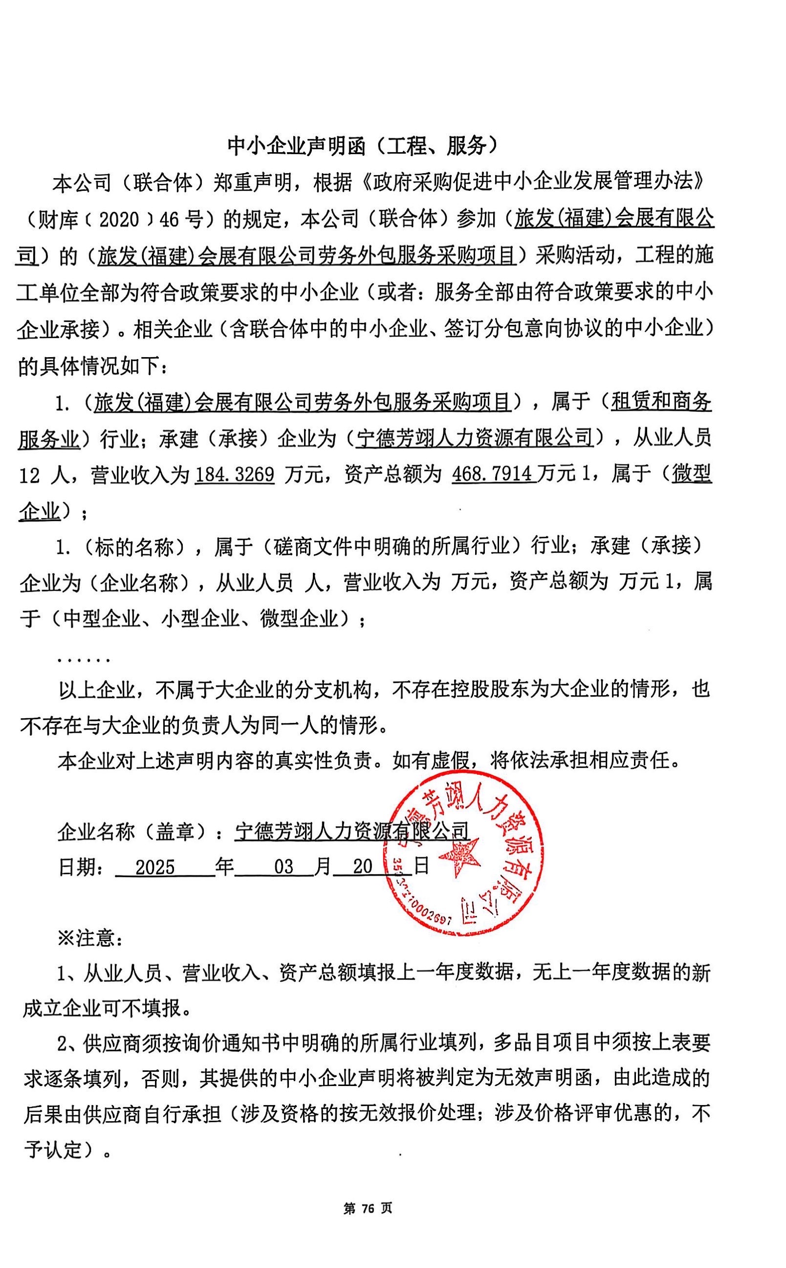 二、項(xiàng)目名稱:旅發(fā)(福建)會(huì)展有限公司勞務(wù)外包服務(wù)采購項(xiàng)目