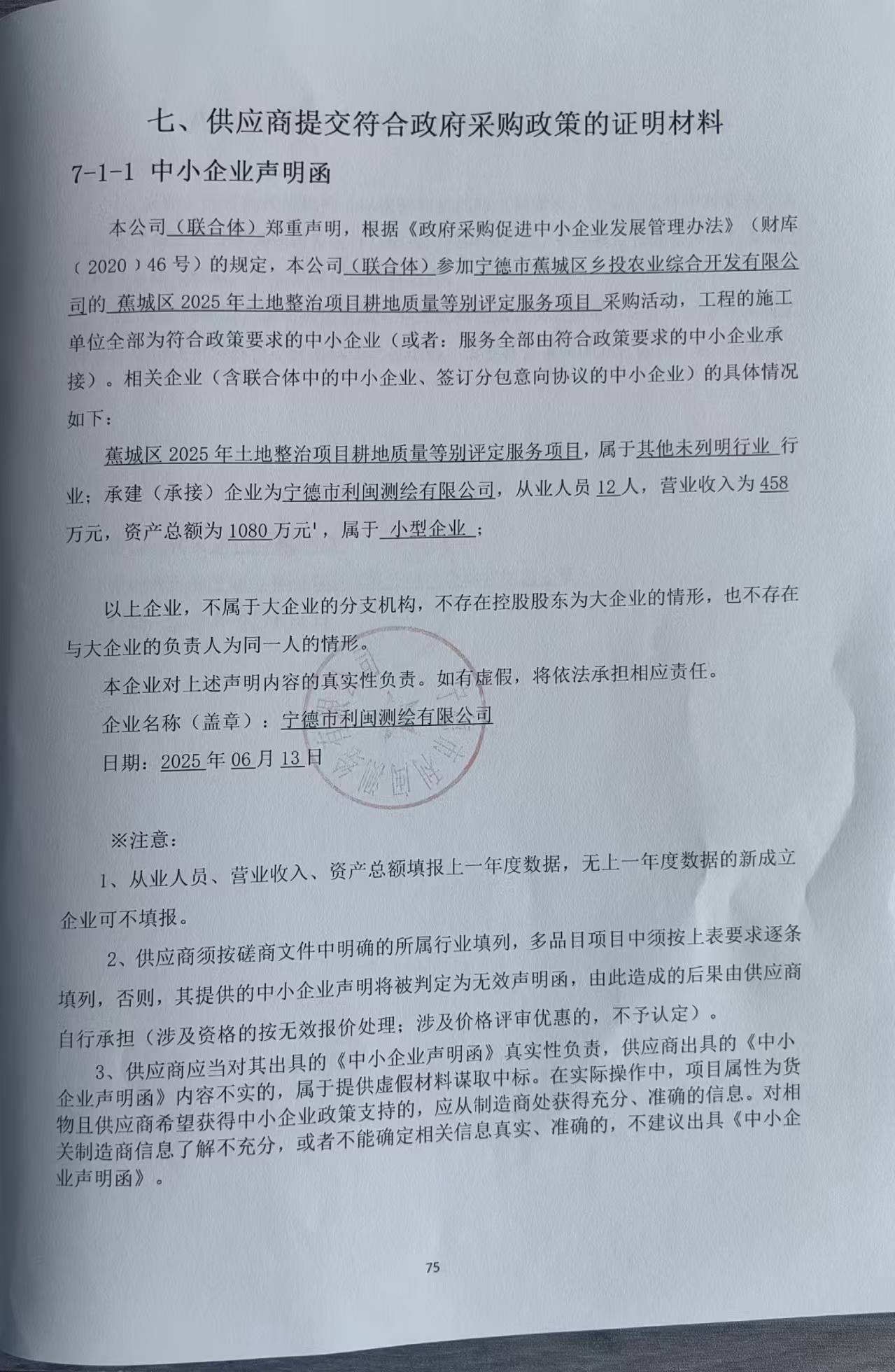 蕉城區(qū)2025年土地整治項目耕地質(zhì)量等別評定服務項目 |
