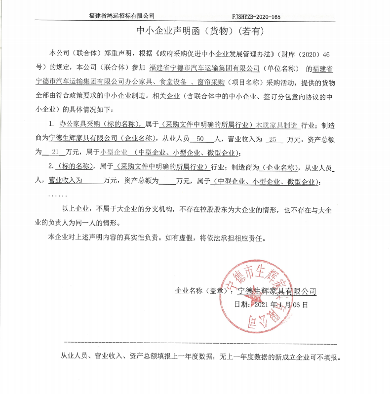 供應(yīng)商名稱(chēng):寧德市生輝家具有限公司(合同包1)